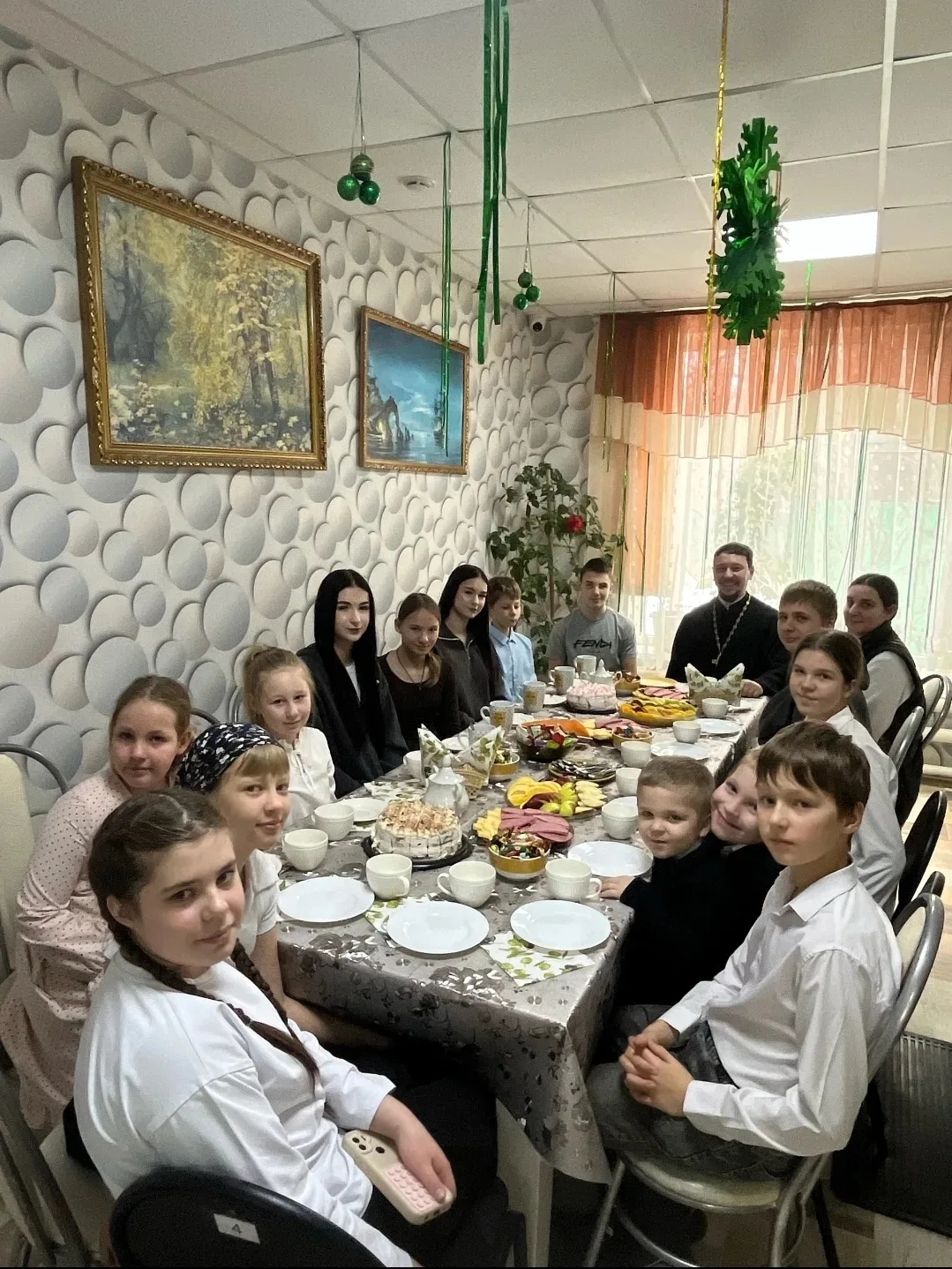 Встреча закончилась чаепитием под рождественские песни служителей храма. В завершении встречи отец Роман вручил воспитанникам центра рождественские подарки и буклеты с историей праздника: «Рождество-богоявление». Тепло дружеского общения, внимание и забота, подаренные воспитанникам взрослыми и детьми Свято – Михайло –Архангельского храма стали истинным свидетельством величия празднества Рождества Христова и настоящим воплощением христианской веры и любви.