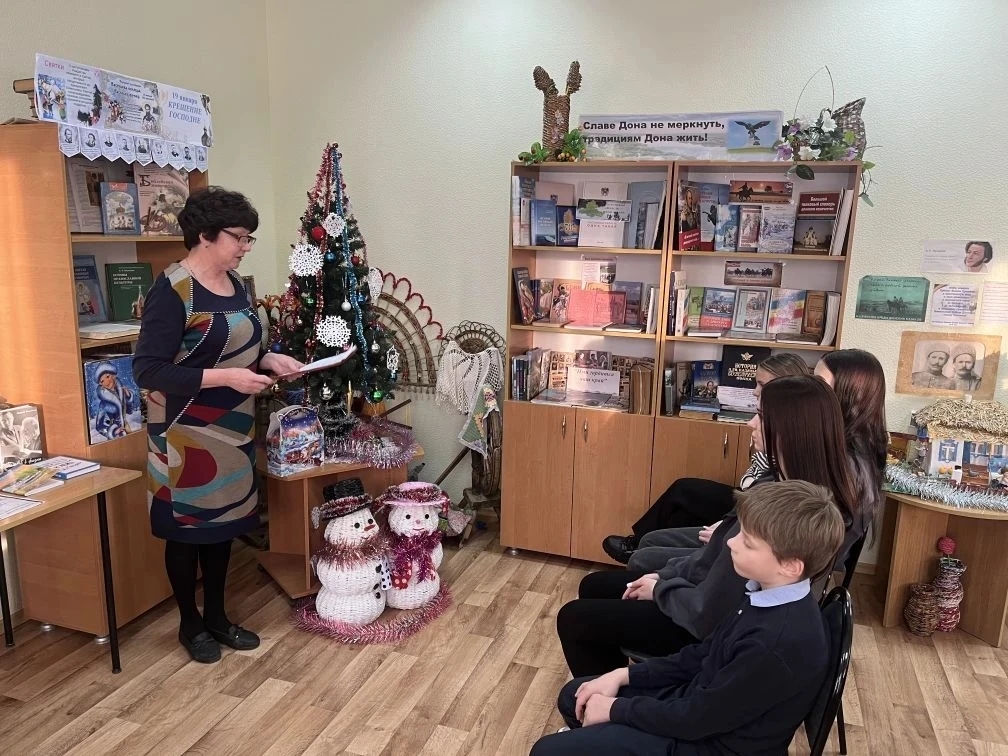 Празднование Крещения Господня - один из 12 главных христианских праздников. Согласно Евангелию, в этот день Иисус Христос крестился в реке Иордан. В народных традициях в Крещение завершаются Святки. Воспитанники Шолоховского центра помощи детям посетили МБУК Калининскую сельскую библиотеку, где прошло мероприятие: «Крещение празднуем Господне» библиотекарь Вера Ивановна познакомились с историей праздника, его традициями, ребята узнали о том, что такое святки, и как на Крещение по всей России проходят богослужения. Главный символ этого праздника — вода. Считается, что вся вода в ночь на Крещение становится чудодейственной: будь то речка в проруби или снег в чистом поле. Ребята рассказывали стихи, отгадывали зимние загадки, узнали народные приметы, связанные с праздником Крещения, играли в игры.