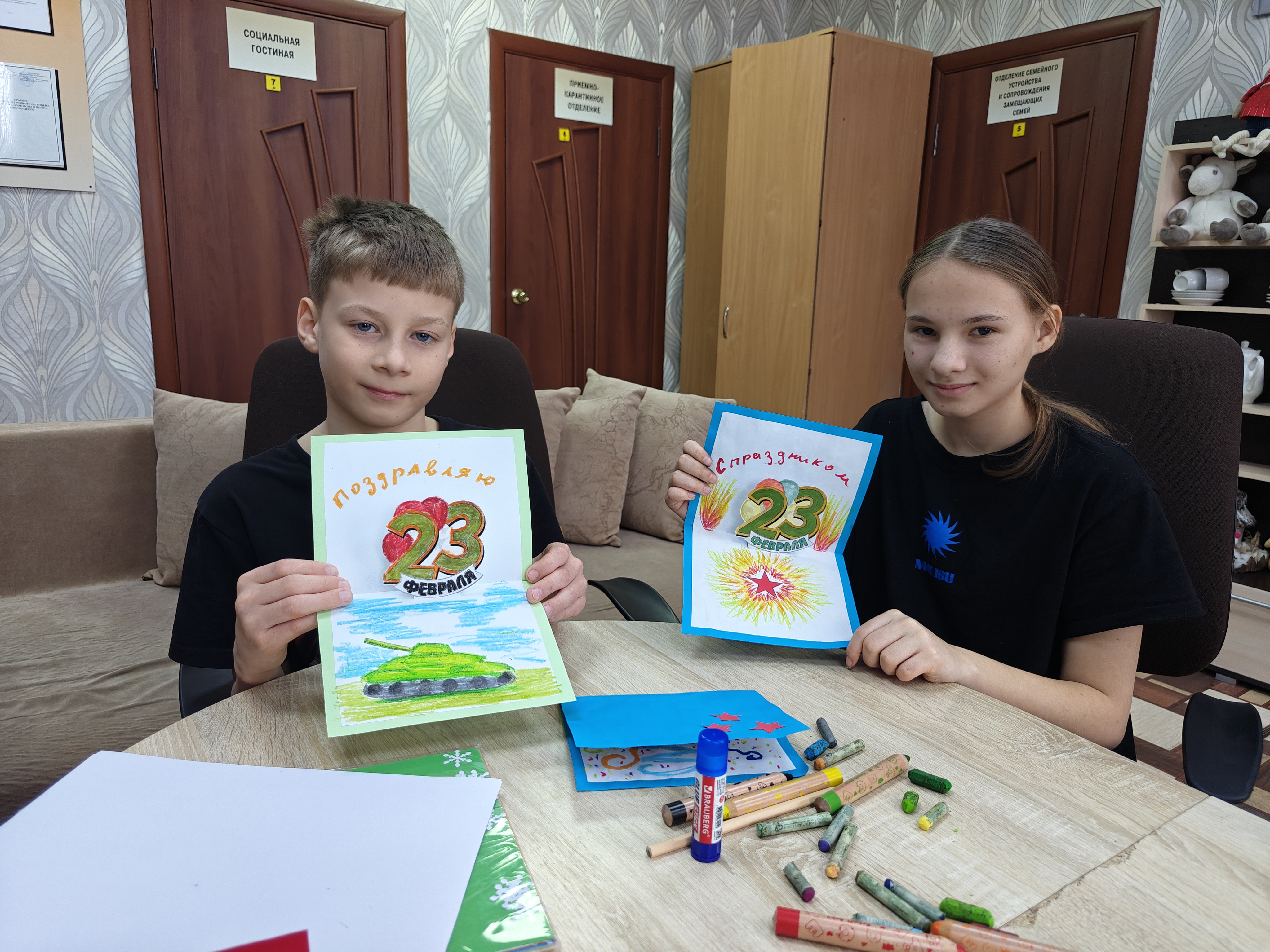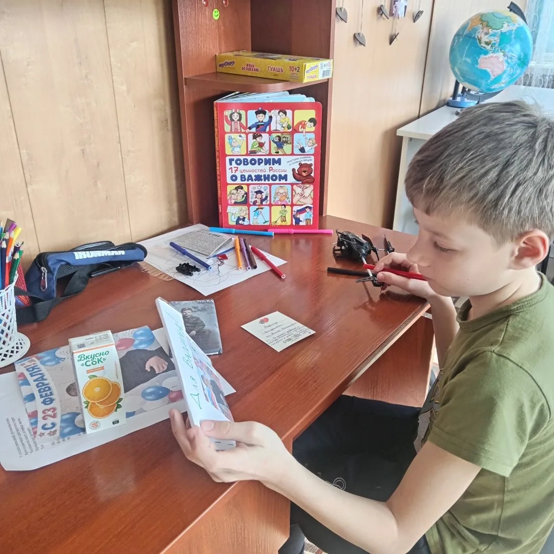 А ещё ребята сделали для солдат, участников СВО праздничные открытки, вложив в них частицу своей любви и уважения за их труд, ведь все любят получать подарки, но бывают такие подарки, которые гораздо приятнее делать самим. В этом убедились наши воспитанники.